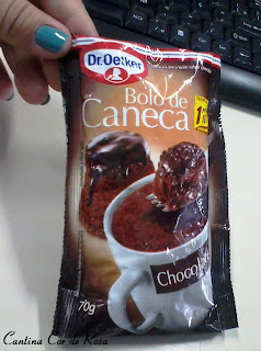 Não acreditei muito, bolo pronto em 1 minuto e 10 segundos? Tive que levar pra casa para conferir. Comprei os sabor chocolate e formigueiro. Também tinha laranja e coco.